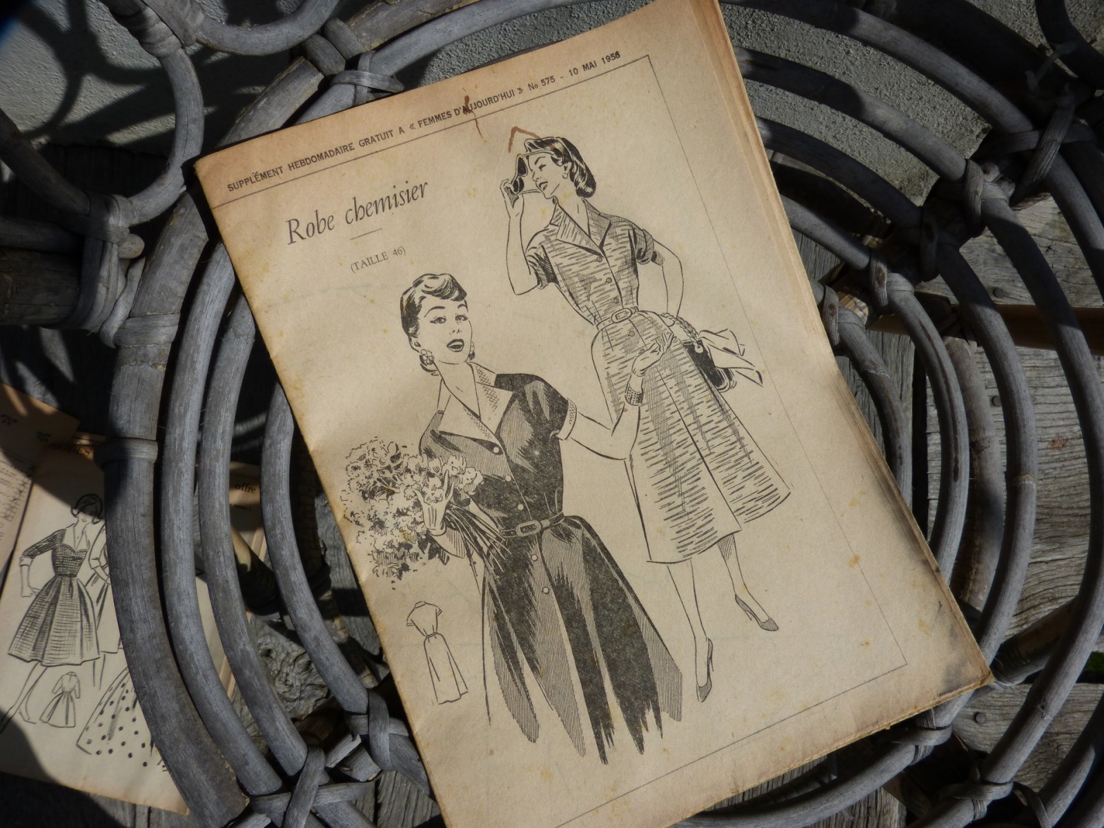 Ce patron vous guide pour couper et coudre une robe chemisier avec col et manches courtes; la robe est évasée, se porte avec une ceinture, elle a des manches courtes; il y a des pinces sur la partie buste et sur la partie jupe. Le plan de coupe et tous les conseils se trouvent dans ce patron qui est à relever avec du papier de soie. Dimension de la feuille patron complètement ouverte: 55 x 77cm. Il y a aussi des modèles de broderie pour une nappe.