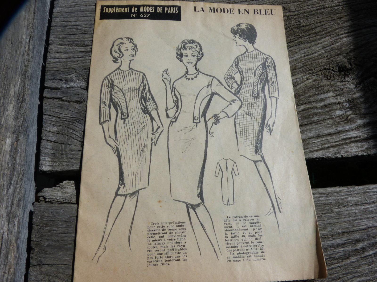 Ce patron est à relever avec du papier transparent. Il vous guide avec des explications précises, des croquis d'assemblages, et le plan de coupe. Cette robe a une coupe près du corps, la longueur est sous le genou. Il y a des pinces et une découpe devant qui donne un effet amincissant. La robe se ferme au milieu dos. Encolure ronde mais peu échancrée. La manche est une manche trois quart. Ce modèle convient à une couturière expérimentée. Dimension du patron déplié: 55 cm x 77 cm. Belles créations! En plus vous trouverez un modèle de broderie de feuillages pour une nappe.