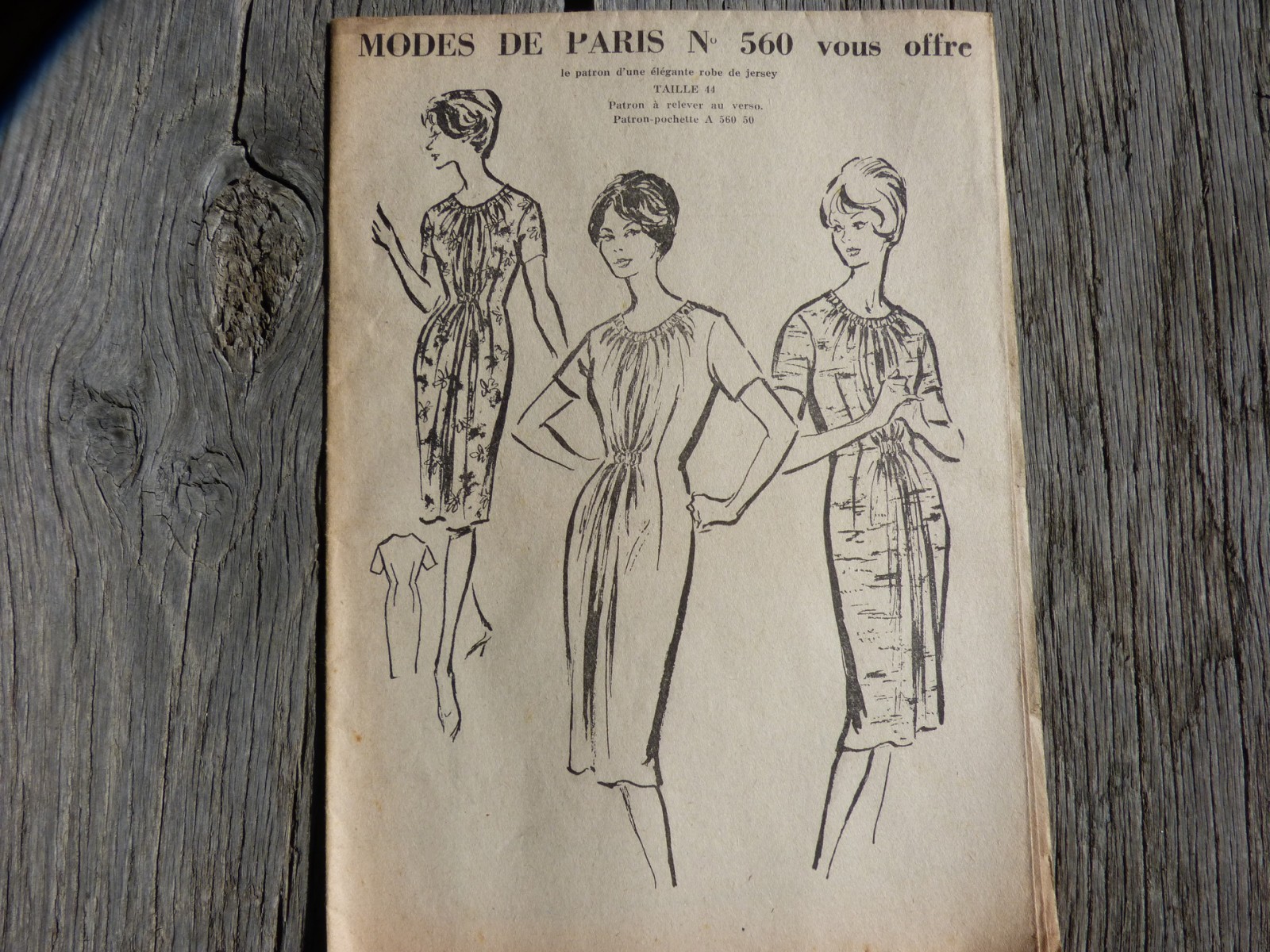 Ce patron est à relever avec du papier transparent; il vous guide avec un plan de coupe et des explications. Il faut 1m50 de tissu en 140 de large. Cette robe est assez simple à confectionner. Elle a des manches courtes et des pinces verticales devant et dos. Un ruban ou un élastique souple est passé dans l'encolure ronde pour donner ce fronçage; et même chose au milieu devant au niveau de la taille. Je déconseille ce modèle si vous êtes ronde car les plis sur le ventre ne vont pas être seyants. Il y a aussi sur ce patron des modèles de broderie pour un tapis de jeu de cartes, trèfle, pique, coeur; un modèle de broderie de lettres. Dimension du patron déplié: 81cm x 57cm.