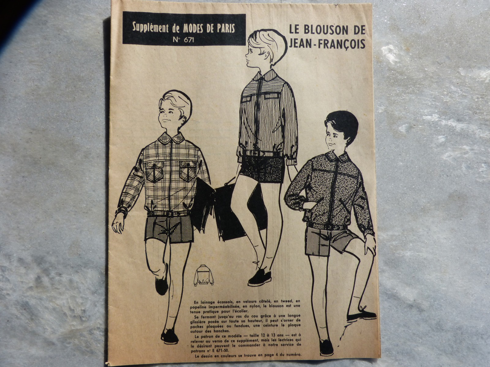 Ce patron est à relever avec du papier transparent; il vous guide avec des explications, le plan de coupe et des croquis d'assemblage. Ce blouson a une fermeture éclair, des manches resserrées par des poignets, différentes formes de poches sont proposées. Petit col rond. Le bas du blouson est élastiqué pour qu'il se plaque sur le bassin. Le blouson est doublé.