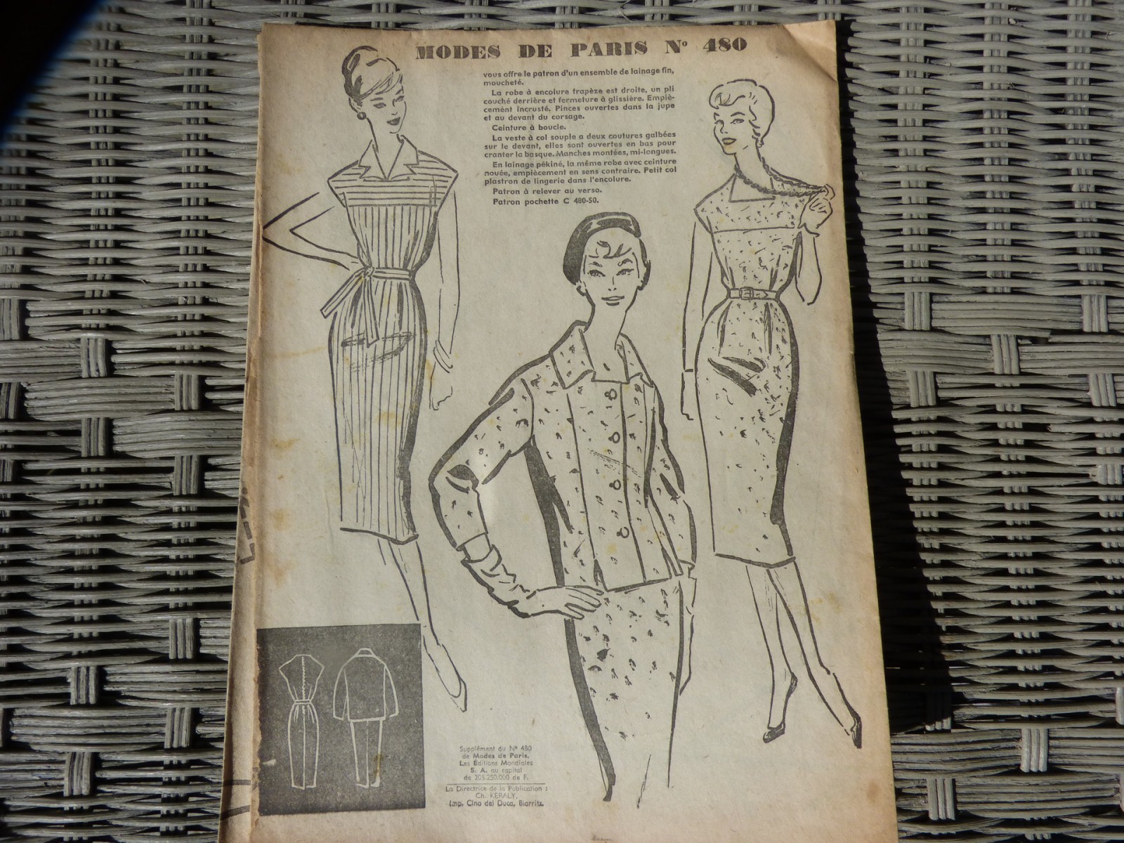 Très beau modèle à couper dans un lainage moucheté. Ce patron est à relever avec du papier transparent; il vous guide avec des explications et le plan de coupe. Vérifiez vos mesures avant de couper. La robe a une forme droite, elle a des pinces pour resserrer la taille ainsi qu'une ceinture. La manche couvre le haut du bras. Empiècement au dessus de la poitrine. L'encolure fait tout le chic du modèle: forme trapèze, et avec ou sans le col cranté. Fermeture éclair dans le dos. La veste a des manches trois quart, elles sont montées. Petites fentes dans les découpes au bas du devant. Très belle forme du col souple à deux coutures galbées.