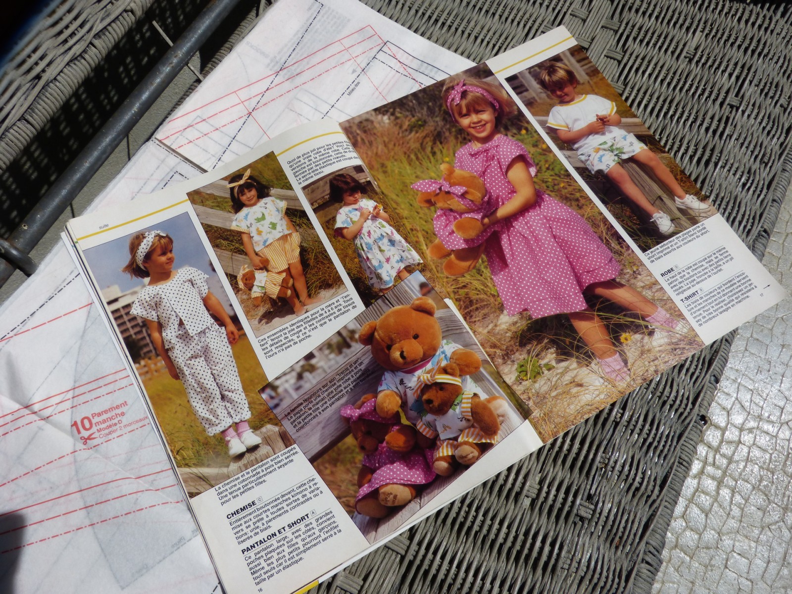 Magazine "Fait main" de 59 pages en couleur où vous trouverez des conseils décoration, des tutos, des modèles de tricot. J'ai mis l'accent sur ces jolis modèles de vêtements pour les enfants et les mêmes vêtements en petit pour les nounours. Il y a aussi un ensemble pour le pique nique à créer en ikat d'Indonésie ainsi qu'un autre style de matelas de plage et des colliers en perles de bois peintes. Un chapeau en toile à visière retournée pour femme. Un gilet pull d'été au crochet. Des modèles de coussins blancs romantiques avec des broderies Anglaises. Il y a d'autres patrons à relever sur la grande feuille: jupe évasée à panneaux ou une jupe cloche pour adulte, un maxi tee shirt, un short à taille élastique. Une magnifique tunique blouse romantique blanche: et comment faire des smock à l'ancienne.