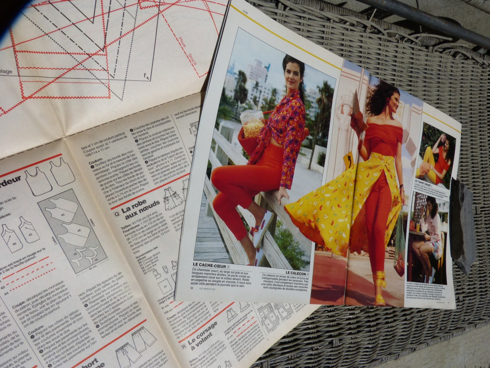 Ce magazine de 59 pages en couleurs et sa grande feuille patron vous permet de coudre tous les vêtements de votre valise pour les vacances: robe à bretelles en vichy, jupe en coton rayé, cache-coeur, tee shirt drapé en jersey, une casquette, un short large et souple pour femme du 36 au 48. Pour les enfants des robes, shorts de 2 à 4 ans. Pour grande fille de 10 à 12 ans un corsage et un short. Une marinière pour femme au crochet à rayures blanc et bleu. Refaire la toile de votre transat. Peindre des fraises au pochoir sur des torchons à carreaux.