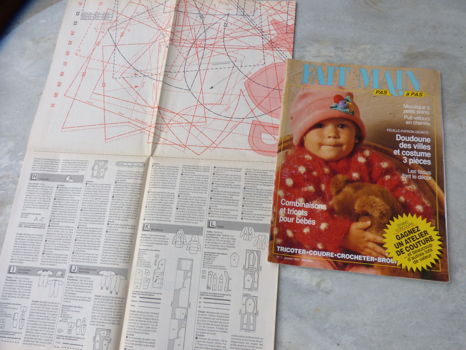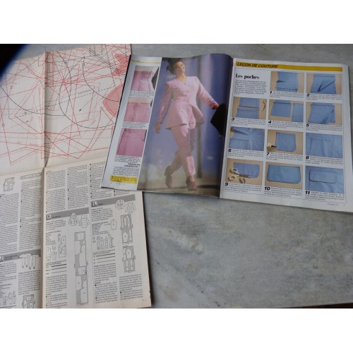 Magazine de 59 pages en couleur et grande feuille patron pour relever tous les modèles de vêtements adultes et enfants. Dans ce numéro il y a 2 modèles de pantalons pour femme en 38, 42, 46, une veste tailleur longue, une jupe courte et moulante en crêpe de laine, une grande doudoune pour femme. Tricot: un pull à torsades. D'autres pulls pour enfants. Des combinaisons pour bébés de 1 an à 2 ans. Et une panoplie de vêtements, pantalons, jupe, casquette, sweet shirt pour les jeunes de 8 à 12 ans.