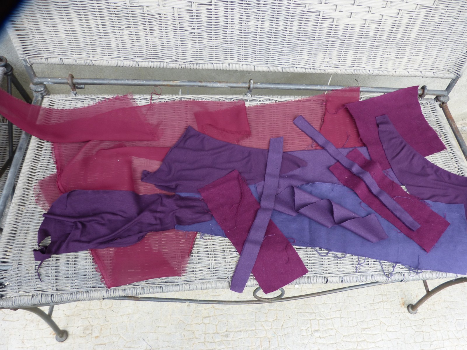 Ce lot de chutes de tissu contient du voile mousseline bordeaux pour ajouter des fronces sur une tunique par exemple; il y a du coton velouté violet et le même en bordeaux, un morceau de tissu d'ameublement violet prune, du tissu extensible coton et viscose couleur prune. Il y a 9 morceaux en tout. Dimension le voile bordeaux mesure 1m x 13cm environs, le tissu tout doux en finette de coton violet: 60 cm x 15 cm. Lavage 30°. Ce sont les chutes de mes créations de vêtements ou coussins décoration.