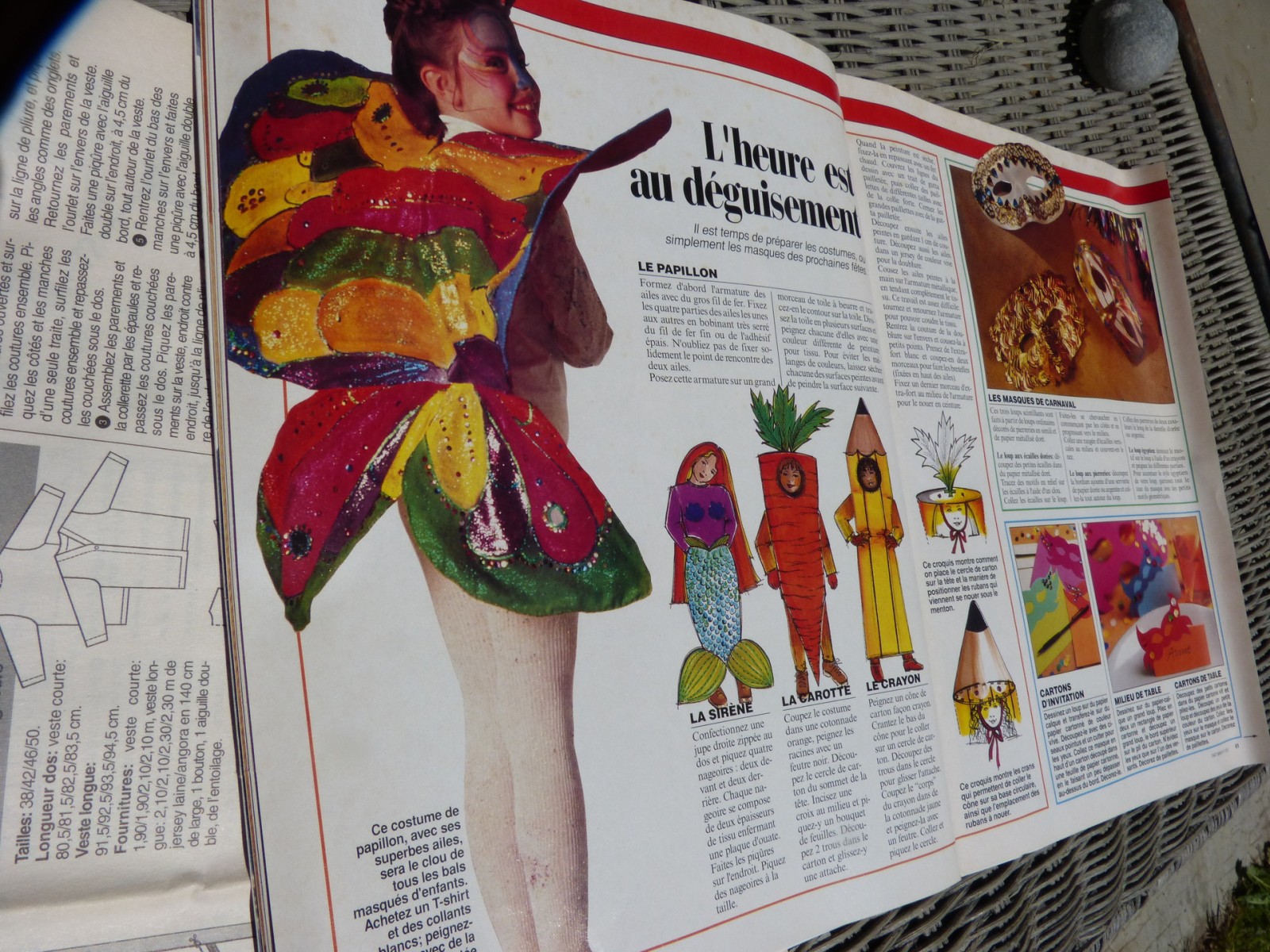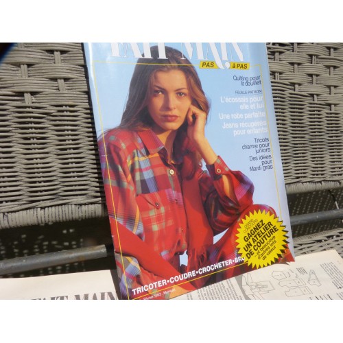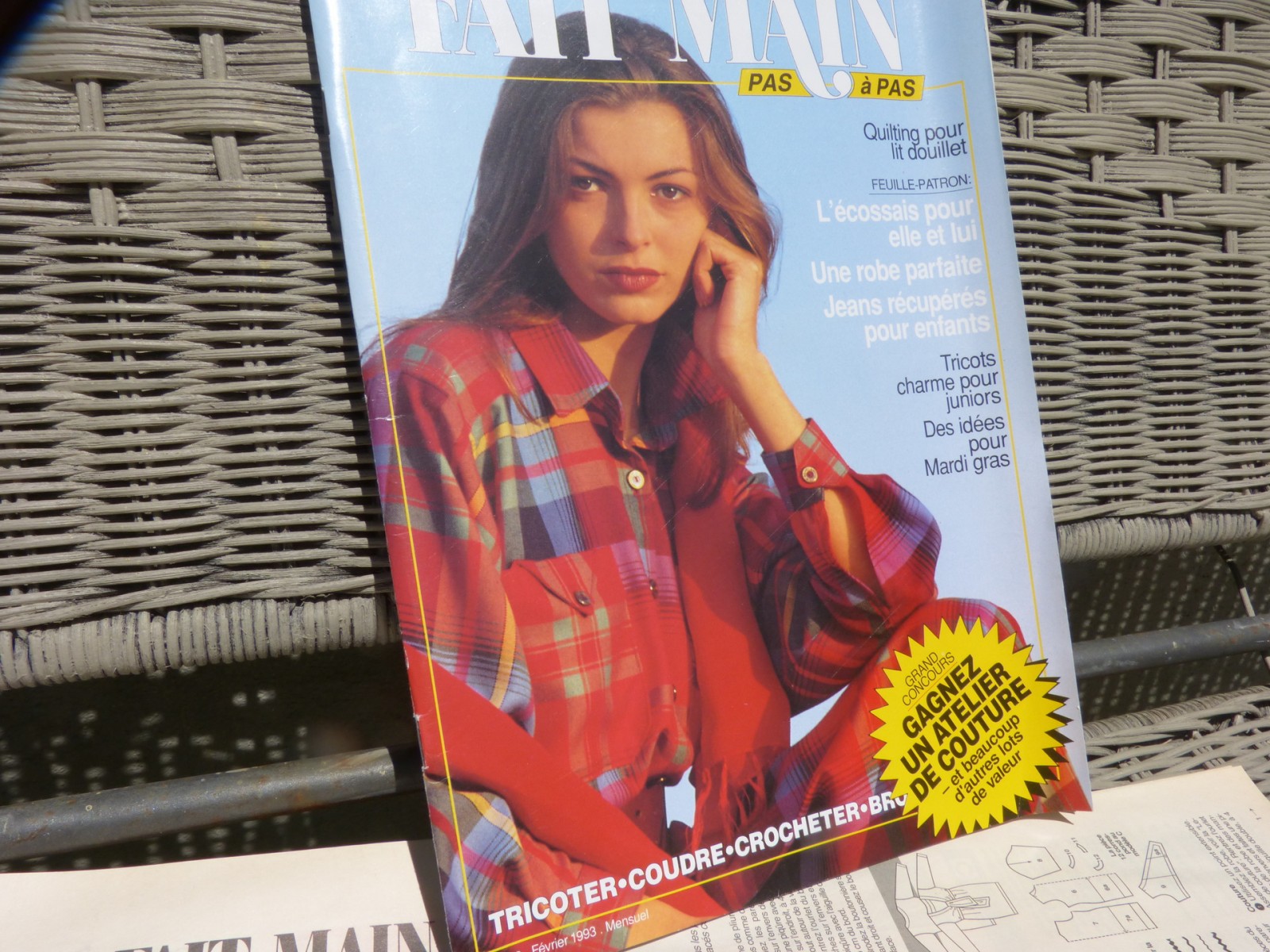 Ce magazine sans publicité contient des patrons et tutos pour confectionner des déguisements et masques pour enfants, et toute une panoplie de vêtements coupés dans des jeans d'adultes pour des enfants tailles 1 à 2 ans. Il y a aussi des patrons de robe, veste longue femme t 38, 42, 46, 50 que l'on peut transformer en 52. Des patrons de robes de chambre h et f en satin forme kimono. Une veste en peau pour femme. Des modèles de tricots femme à dessins fleurs.