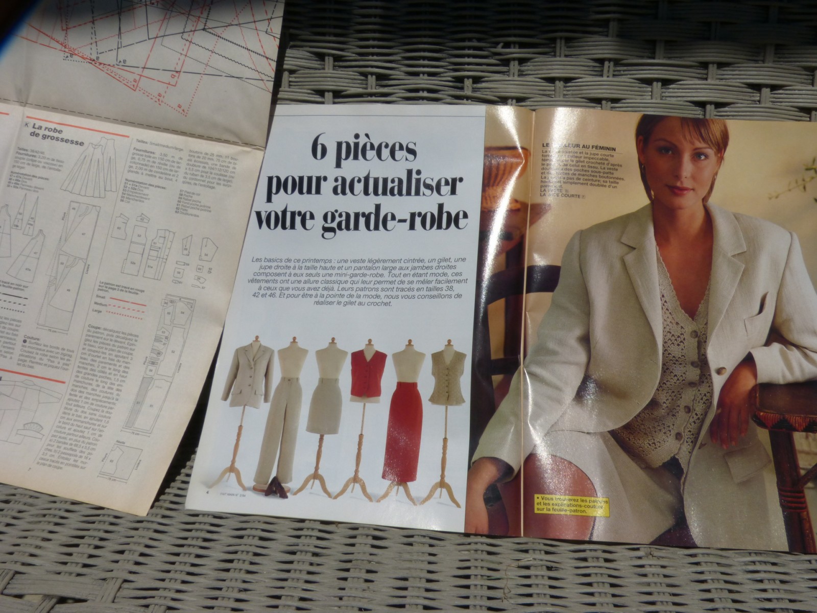 Ce magazine de 68 pages en couleur est sans publicité. Vous trouverez les patrons d'un ensemble veste, pantalon, gilet, jupe classique à relever avec du papier calque. Des explications pour réaliser un gilet ajouré au crochet qui ira avec le pantalon et la veste. Pour les fans de tricot, il y a des modèles de pulls à torsades. Un modèle de veste tunique croisée à grand col, pour les femmes tailles 46/48. En déco, une superbe chambre: tête de lit, jeté de lit en toile de Joui, des polochons avec finition boutons style tapissier. En art plastique un bel arbre généalogique avec des fleurs ou avec des feuilles de chêne. Des modèles de ceintures en peau avec explications et modèles de tressages. Une robe de princesse et un costume de chevalier pour petit garçon.