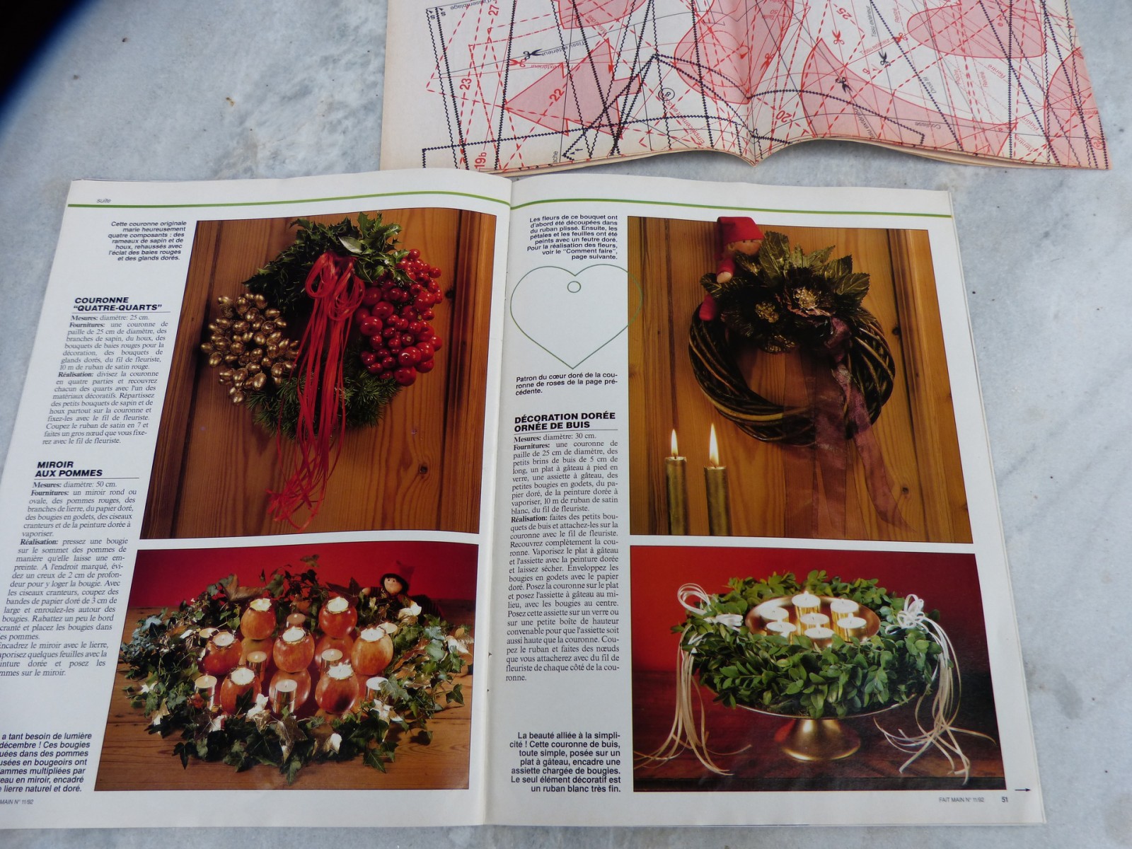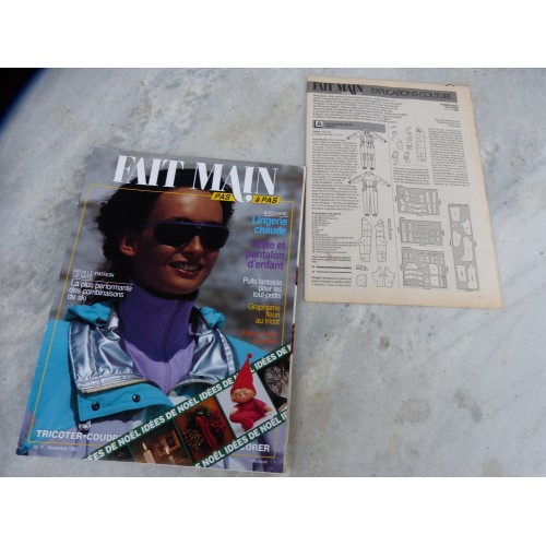 Ce magazine Fait main tout en couleur est une mine d'idées pour décorer la maison, créer des objets soi même avec les explications et les croquis. Une grande feuille patron accompagne ce numéro: confectionnez une combinaison de ski pour femme et pour homme, un poncho confortable. Des lutins en chiffon pour Noël, des couronnes de Noël, un tableau textile avec des nounours, des boites en métal fin gravées de motifs avec un clou. Tricotez des pulls pour bébé de 2 ans, cousez un blouson en lainage orangé, une casquette gavroche noire et une salopette noire rayée pour garçon de 4 à 6 ans.