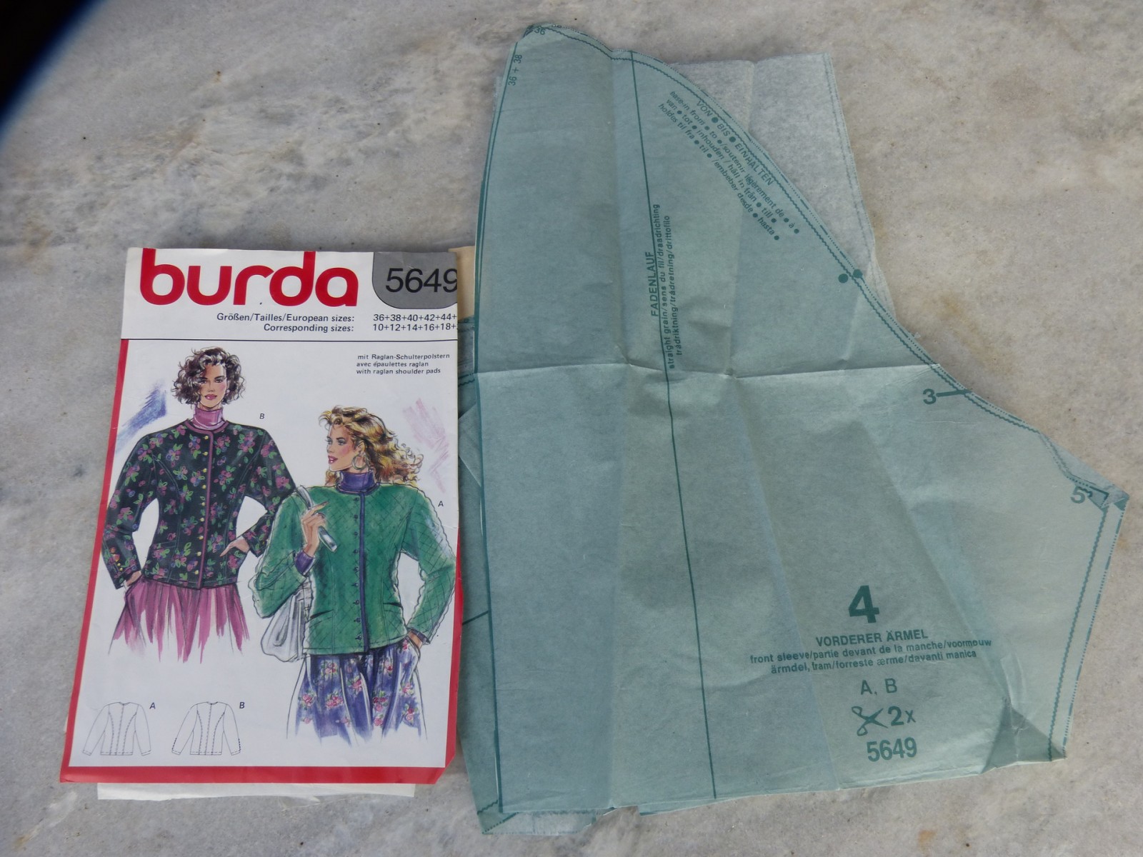 Ce patron est découpé en taille 38. Une grande feuille vous donne les explications, le plan de coupe, le métrage de tissu dont on a besoin. Cette veste est matelassée, elle a des manches longues, des poches prises dans les découpes devant. Encolure ras du cou, boutonnage, un biais de couleur contrastée borde la veste.