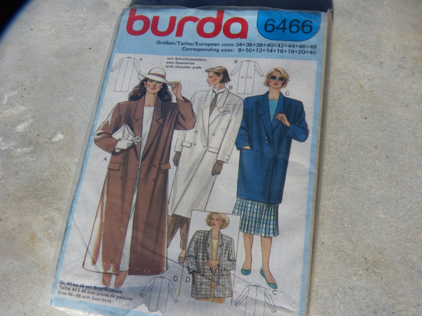 Ce patron est déjà découpé en taille 48, si vous voulez une taille plus petite il vous suffit de découper sur le repère qui correspond à la taille désirée. Une grande feuille technique vous donne les explications avec des croquis. Ce patron vous permet de réaliser une veste, ou un manteau court ou un manteau long. Col tailleur, manches avec épaulettes, boutonnage croisé, poches à rabats ou poches passepoilées.
