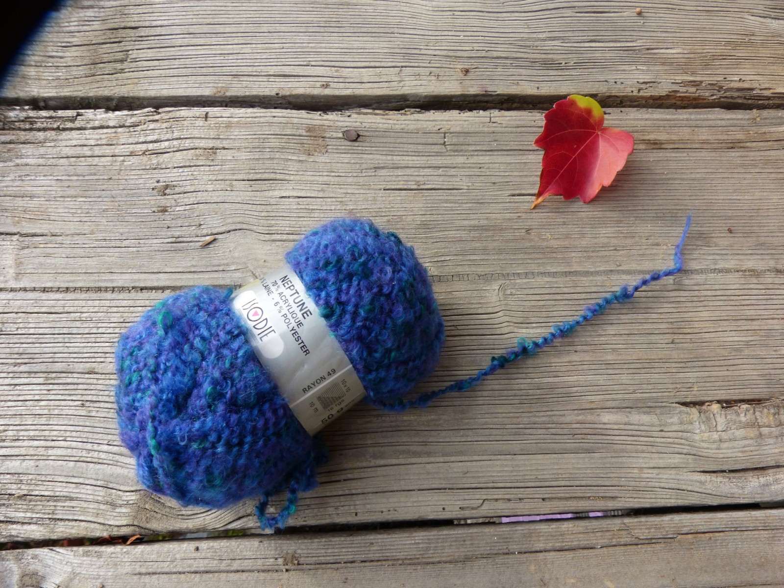 Pelote complète 50gr d'une belle laine violet panachée de bleu roi et vert. 24% laine, 6% polyester, 70%acrylique. Hauteur de la pelote 18cm. Vous pourrez tricoter ou crocheter bonnets, col, écharpe, pull; faire des décorations, lampes et encore bien des choses!