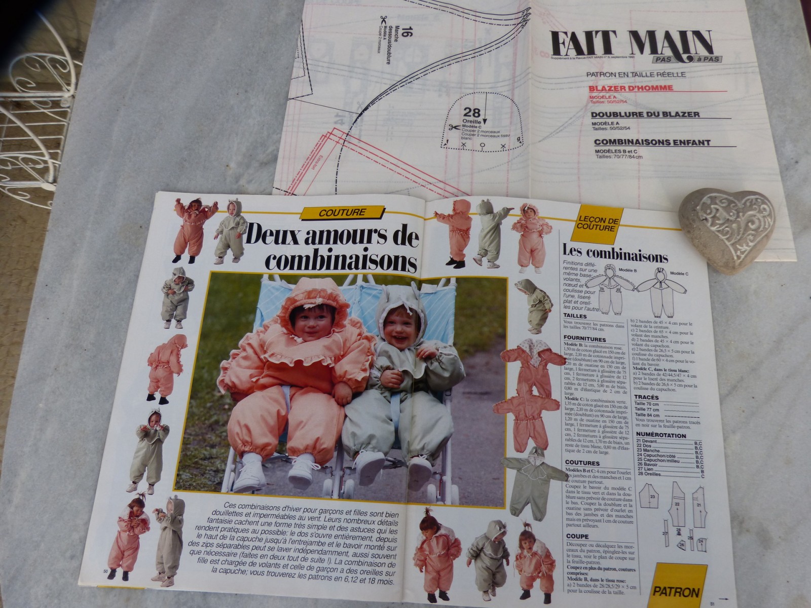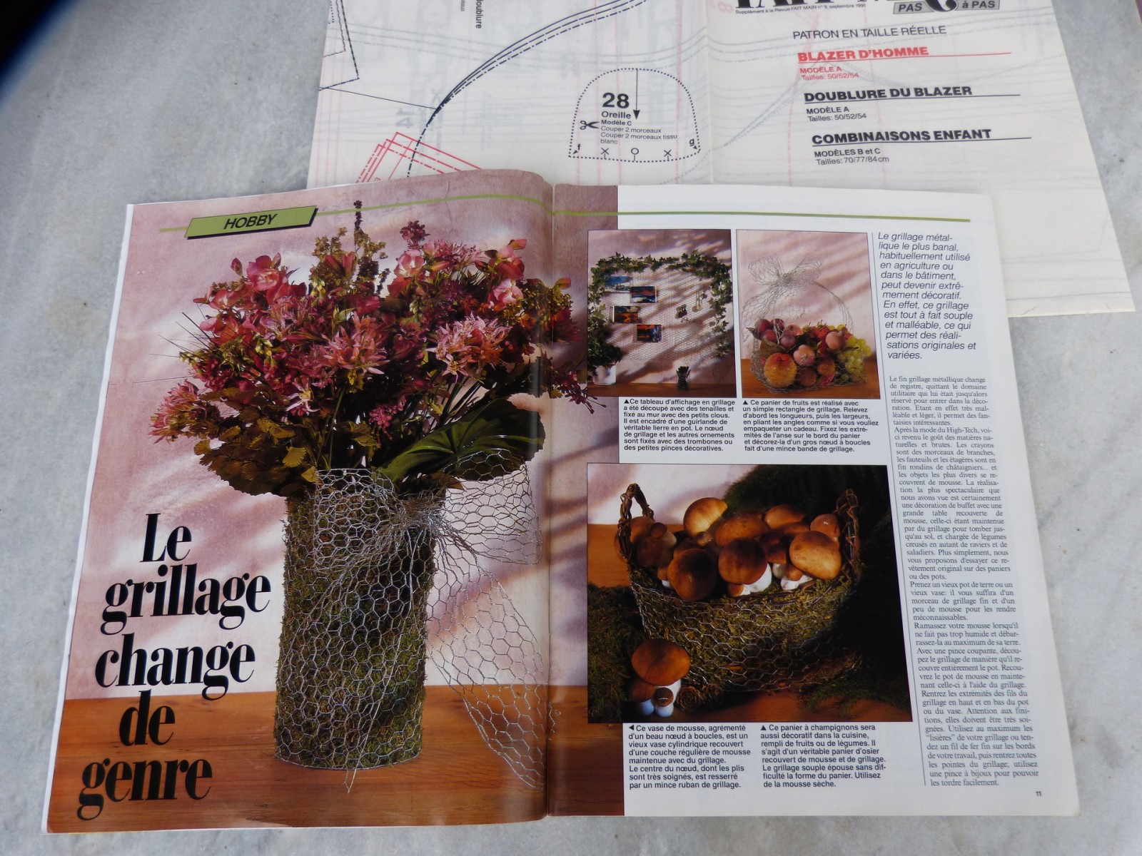 Dans ce magazine "Fait main" tout en couleur et sans publicité, vous trouverez une mine d'idées pour tout décorer dans la maison: faire des bouquets, coussins fleuris, des rideaux stores en tissu fleuri. Un salon avec gros coussins graphiques. Des modèles de pulls au crochet. Des balles en tissu pour un jeu d'éveil pour bébé. En couture, une combinaison d'hiver bien chaude pour bébé. Manteau rouge, mini jupe et blouson pour femme; blazer pour homme. Une grande feuille patron accompagne ce livre et vous donne toutes les explications.