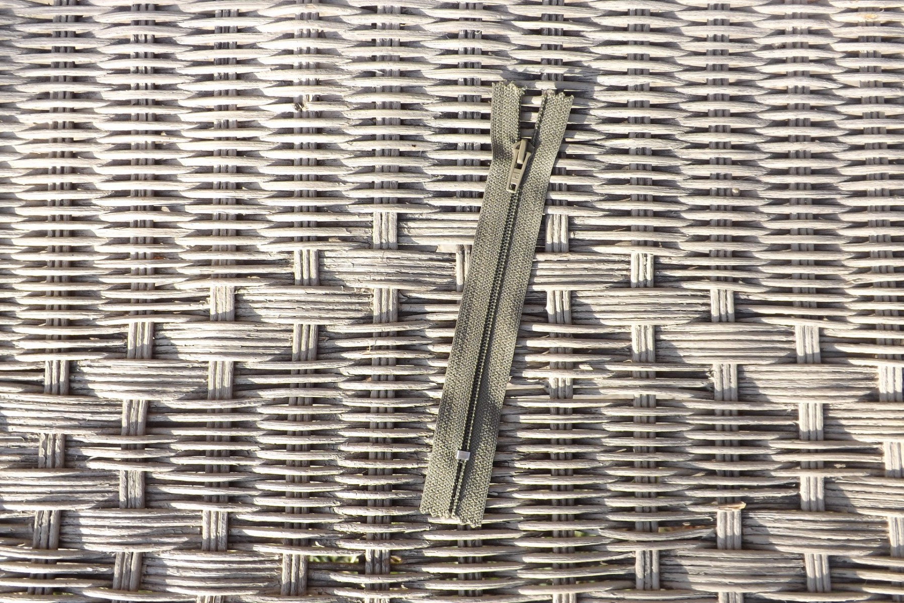 Petite fermeture plastique couleur kaki non séparable. Long 12cm pus 2cm de tissu en haut et bas pour rentrer dans le vêtement. Largeur 2,5cm. Curseur métal kaki avec petite tirette articulée 1cm. Idéale pour pantalons, poches, pochettes etc.