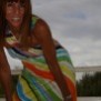 La barboteuse a une ceinture qui se noue dans le dos au dessus de la bande élastique au dos du short, une bavette carrée, des bretelles boutonnées devant. La barboteuse est très froncée et resserrée par un élastique souple dans le bas.