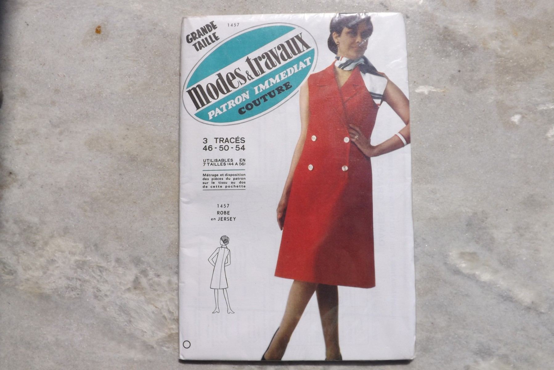 Ce patron est en papier, il n'a pas été utilisé; il vous suffit de découper le long du trait qui correspond à votre taille. Le plan de coupe est au dos de la pochette et les schémas d'assemblage et explications sont dans la pochette.