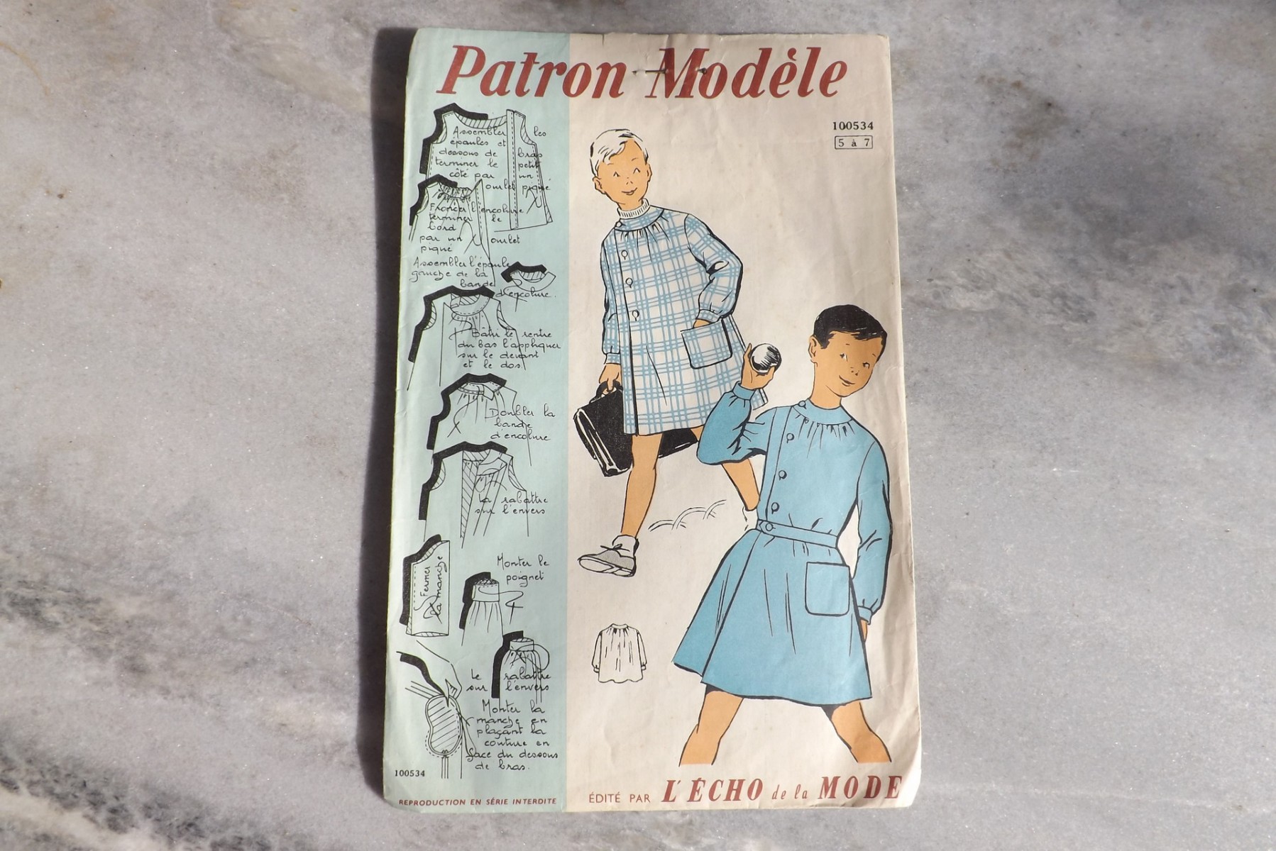 Ce patron est en papier de soie, il est déjà découpé. Le plan de coupe est au dos de la pochette avec les explications. Croquis d'assemblage sur le devant de la pochette. Métrage: 2m15 en 80cm de large.