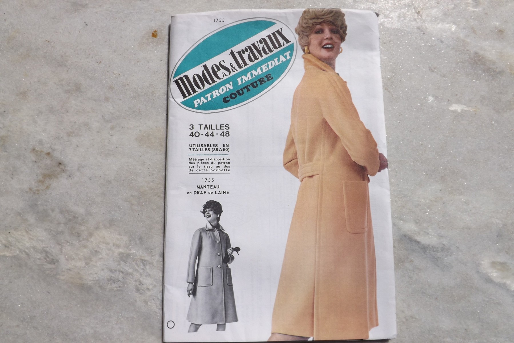 Ce patron est en papier, il est neuf, il vous suffit de découper le long du trait qui correspond à votre taille. Le plan de coupe est au dos de la pochette, les explications et croquis sont à l'intérieur.