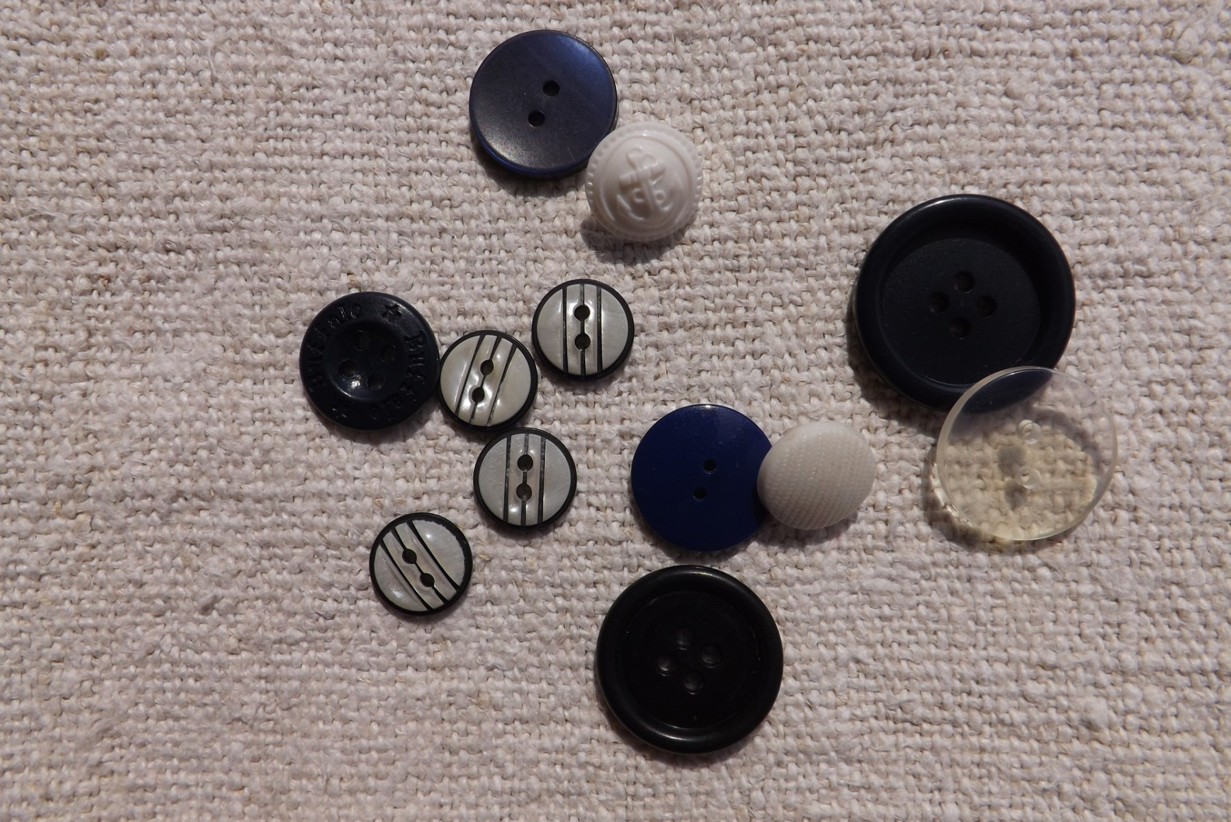 1 blanc bombé mat avec le dessin d'une ancre diam 1,3cm, se coud sous le bouton